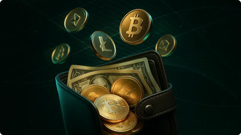 No more waiting days and weeks or paying over $50 for transfers. Hold fiat and crypto in one single dashboard for spending online and in person.